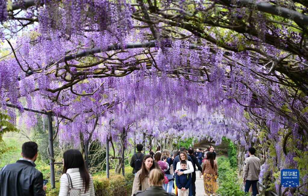 意大利佛羅倫薩巴爾迪尼花園近日紫藤花盛放,吸引眾多游客前來觀賞。
