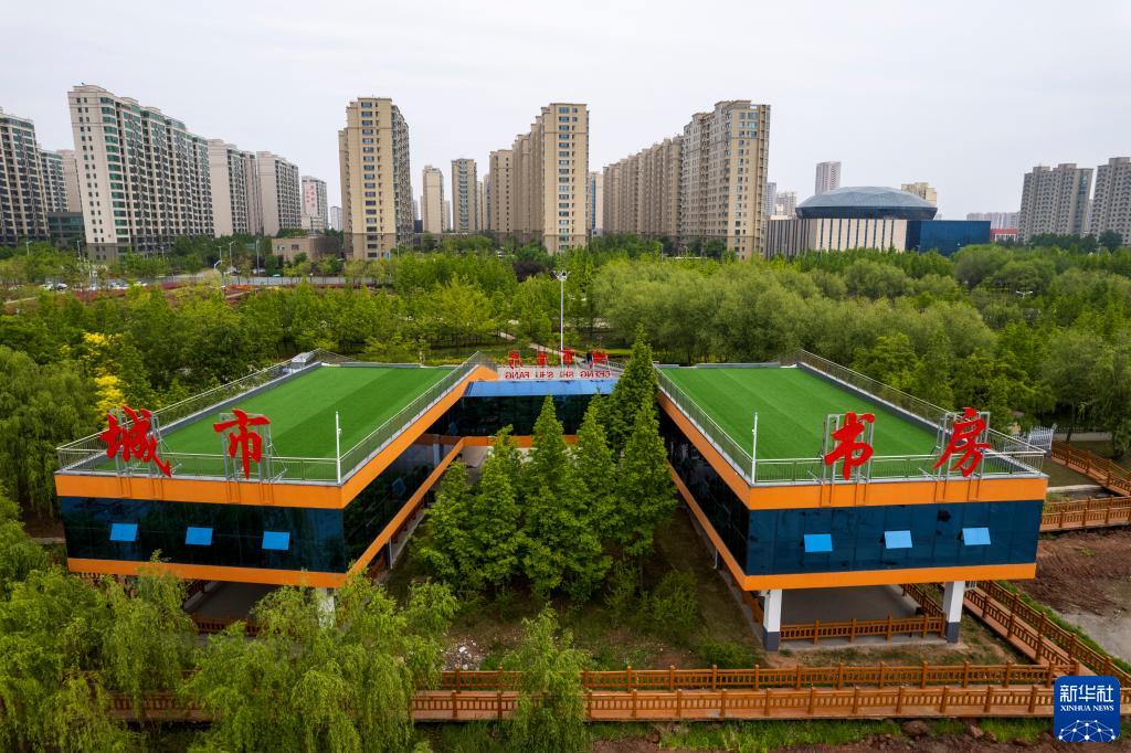 4月24日在山東省臨沂市臨沭縣拍攝的城市書房(無人機照片)。