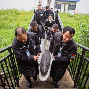 當日,來自長江天鵝洲故道的4頭遷地保護長江江豚分批順利放歸進入長江干流新螺和石首江段。這是我國首次開展遷地保護長江江豚野化放歸工作,此舉對促進長江江豚自然種群數量回升,推動長江江豚保護技術發展具有重要意義。