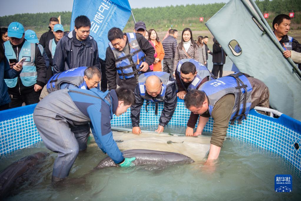 當日,來自長江天鵝洲故道的4頭遷地保護長江江豚分批順利放歸進入長江干流新螺和石首江段。這是我國首次開展遷地保護長江江豚野化放歸工作,此舉對促進長江江豚自然種群數量回升,推動長江江豚保護技術發展具有重要意義。