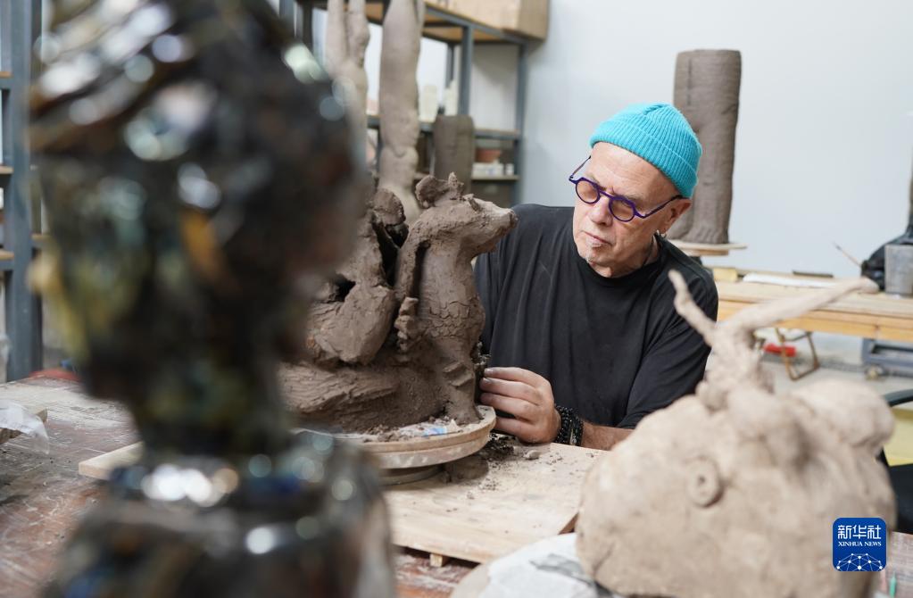 托爾斯滕·尤雷爾在江西景德鎮陶溪川陶瓷文化創意園自己的工作室內創作(4月20日攝)。