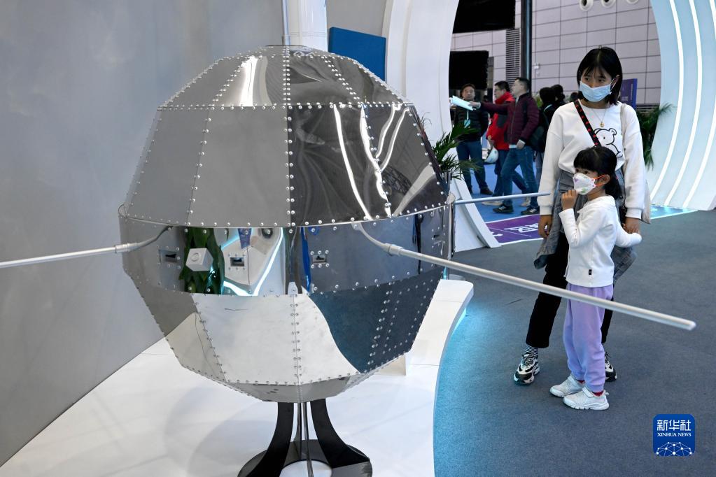 4月24日,以“走向世界的中國航天”為主題的展覽在安徽省合肥市開展,該展覽是2023年“中國航天日”主場活動之一,包括科普展區、航天產業展區等展區。其中科普展區面積約3000平方米,展出了嫦娥五號返回器、月球樣品封裝罐、月壤等實物展品以及運載火箭、航天服、天問一號等模型。眾多市民來到展覽參觀,增長航天知識,共筑太空夢想。