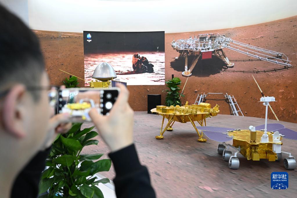 4月24日,觀眾在科普展區拍攝火星探測器模型。