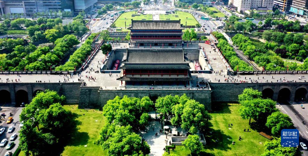 西安明城墻永寧門(4月25日攝,無人機照片)。