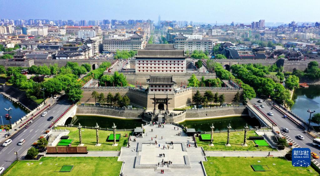 西安明城墻永寧門(4月25日攝,無人機照片)。