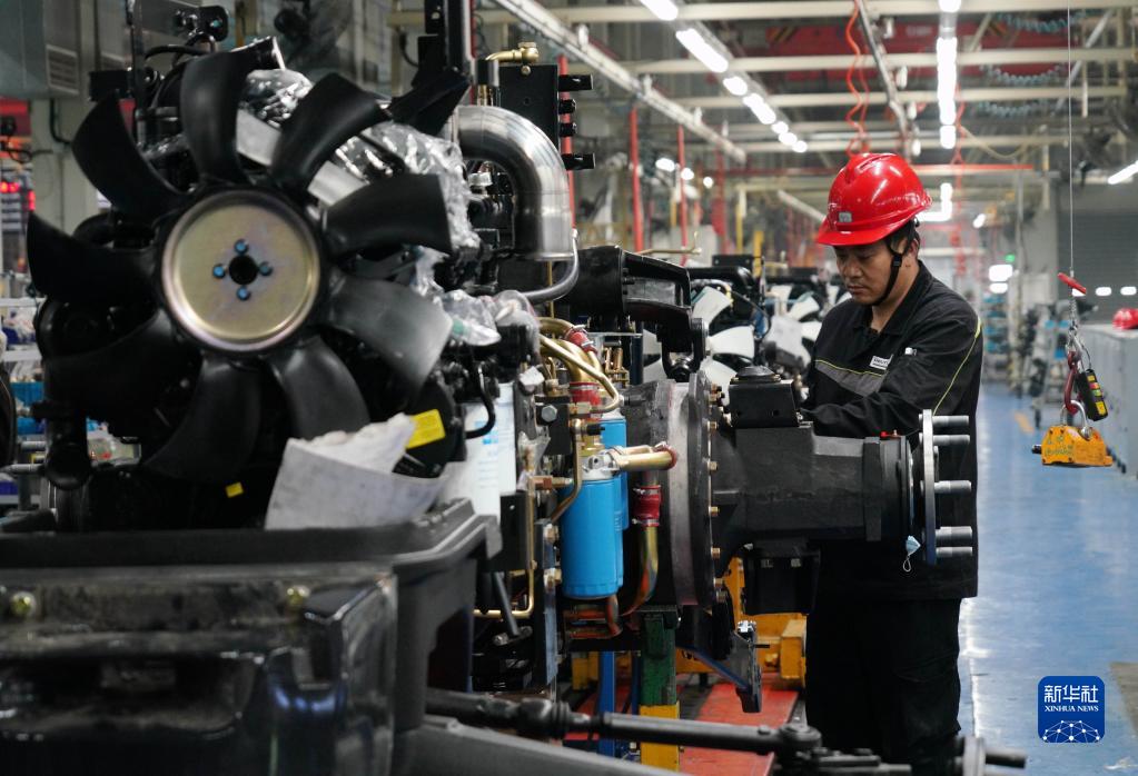 4月25日,在山東省臨沂市臨沭縣一家機械制造企業,工人在車間內組裝農機產品。