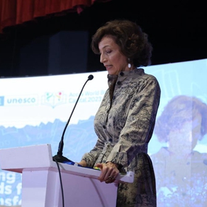 4月24日,聯合國教科文組織總干事阿祖萊在加納首都阿克拉舉行的儀式上講話。