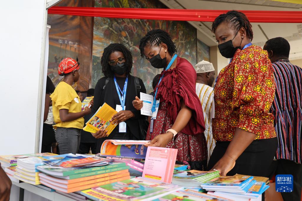 4月24日,在加納首都阿克拉舉辦的圖書展上,人們在展臺前瀏覽圖書。