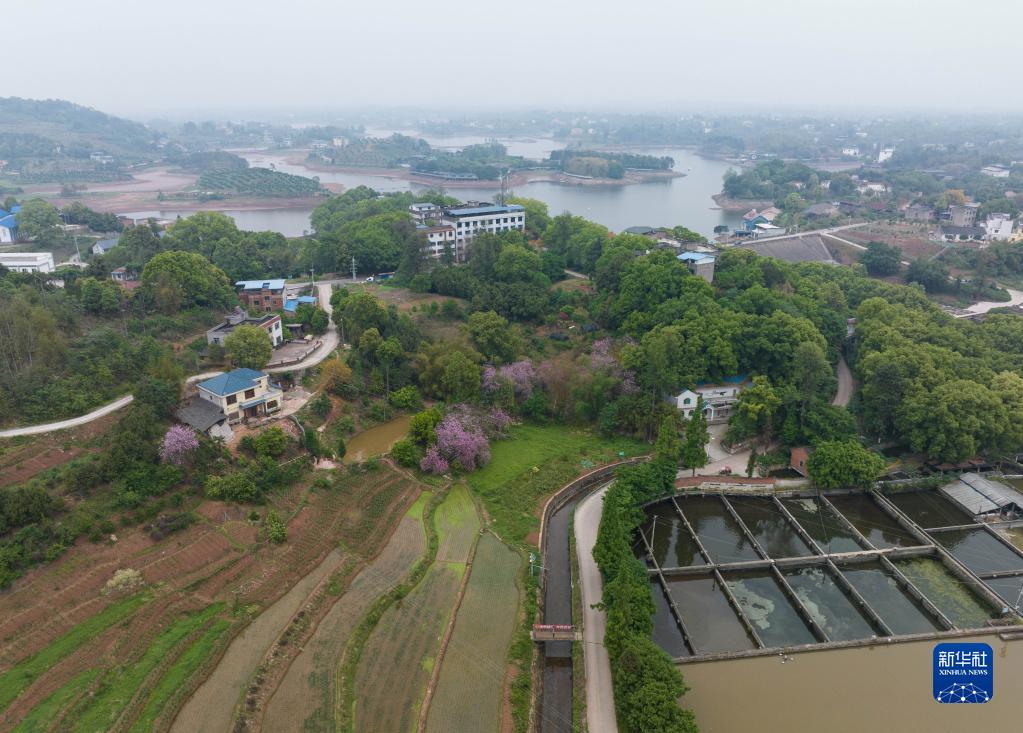 4月25日在瀘縣立石鎮拍攝的瀘縣渡槽群水源地三溪口水庫(無人機照片)。
