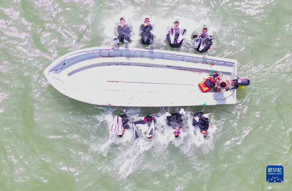 東部戰區陸軍第72集團軍某特戰旅特戰八連組織官兵進行潛水訓練(2022年7月9日攝)。新華社發(胡雪峰 攝)