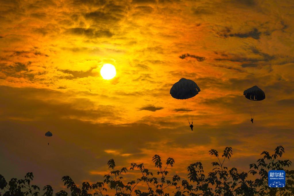 東部戰區陸軍第72集團軍某特戰旅特戰八連組織官兵進行傘降實跳訓練(2022年9月26日攝)。新華社發(胡雪峰 攝)