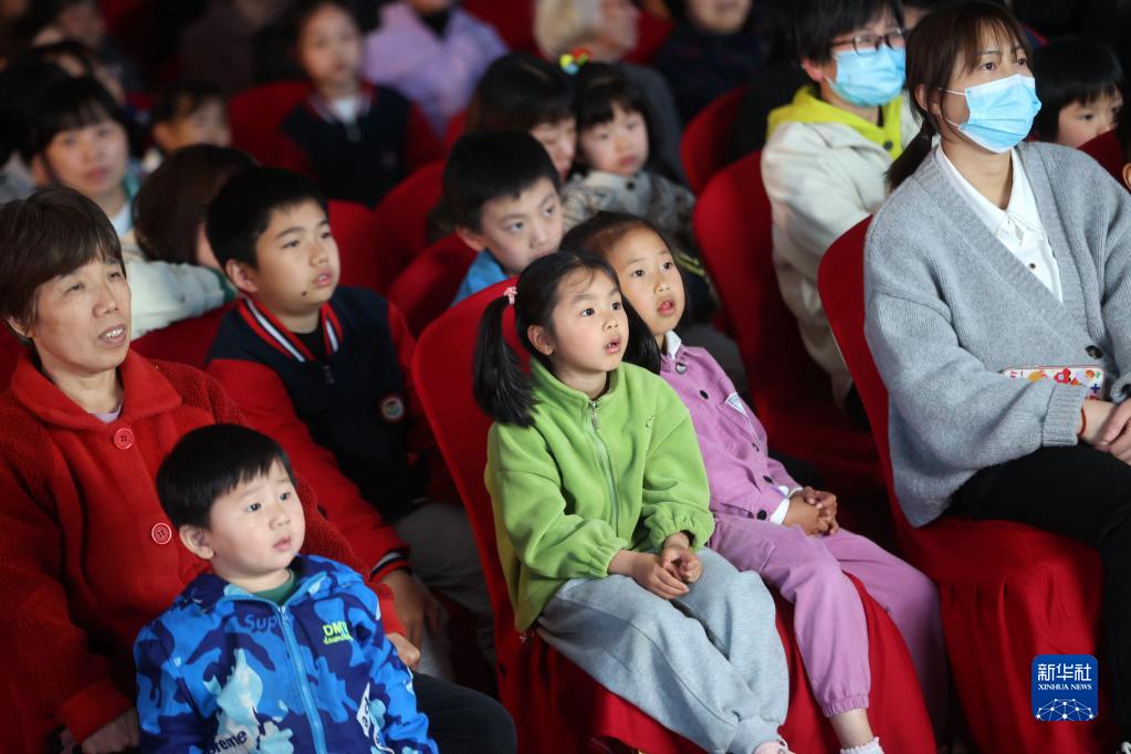 4月24日晚,在德清縣禹越鎮東港村文化禮堂,村民們在觀看皮影戲。