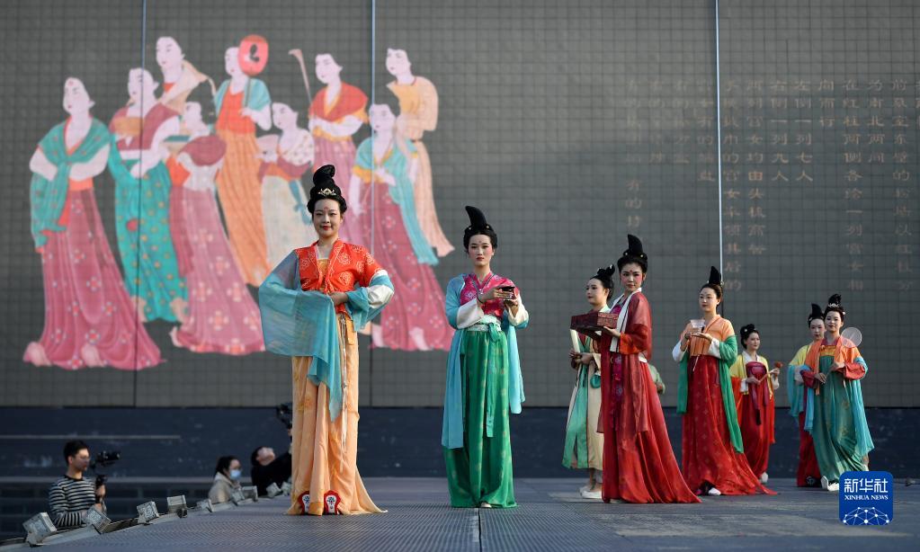 4月25日,華服走秀在西安大唐不夜城步行街舉行。