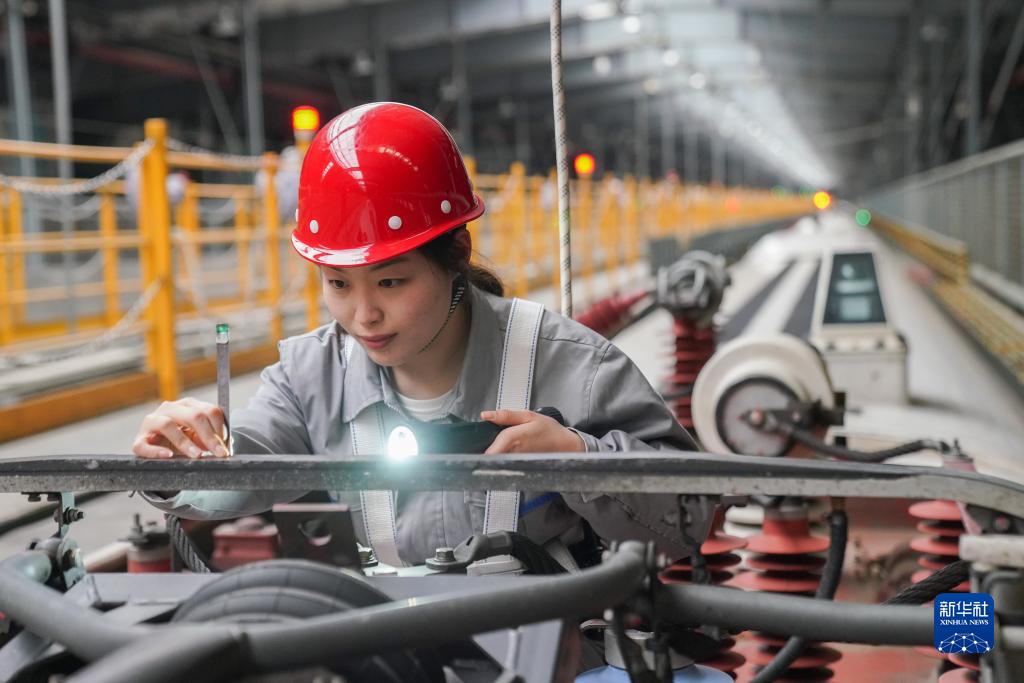 在中國鐵路哈爾濱局集團有限公司哈爾濱動車段整備庫,“雪絨花”女子班組的機械師們正緊張地為動車段配屬的動車組進行檢修作業,為即將到來的“五一”小長假鐵路運輸做好運力安全保障。