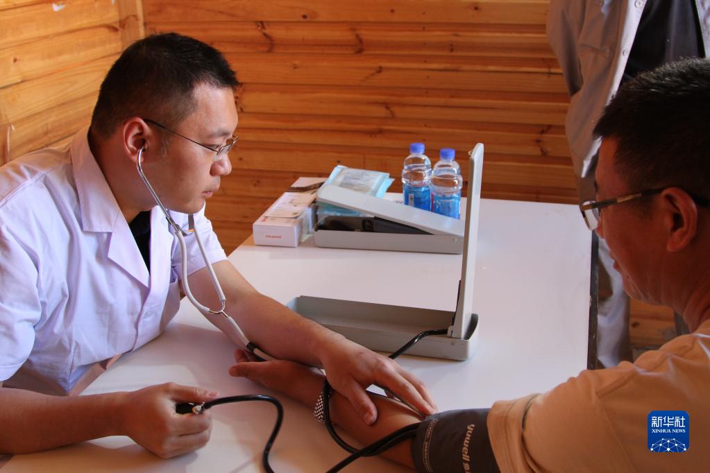 4月25日,在津巴布韋阿卡迪亞礦區,中國第20批援津巴布韋醫療隊隊員為中企員工義診。
