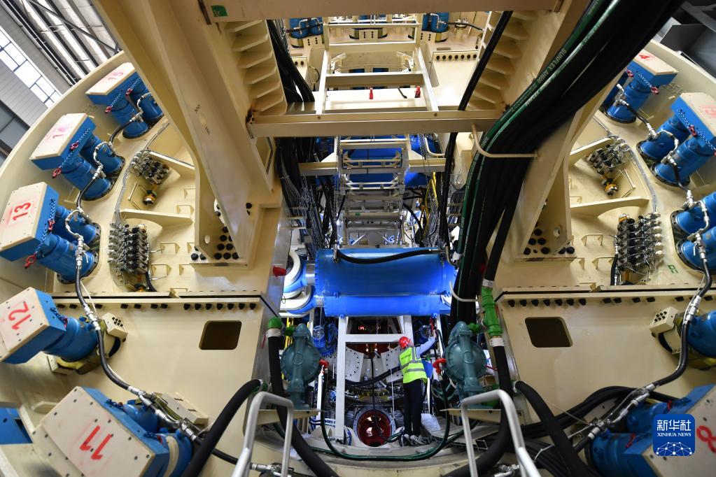 4月26日,工作人員在鐵建重工長沙第二產業園調試“鐵兵廣花6號”。