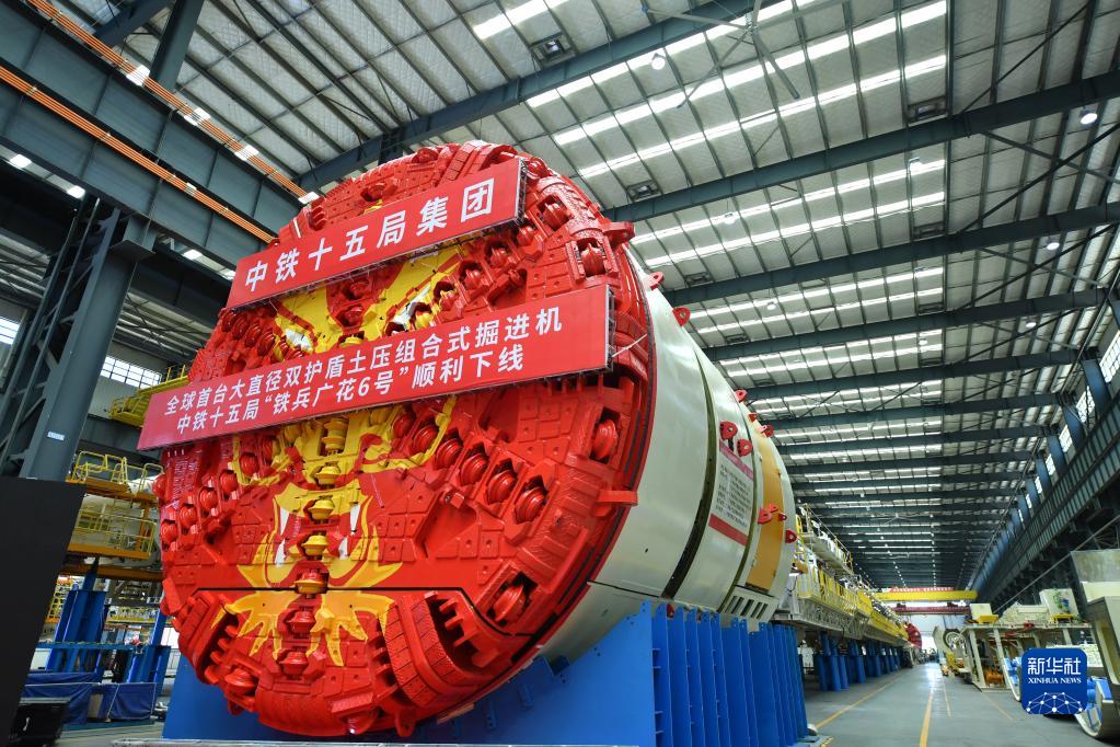 當日,大直徑雙護盾土壓組合式掘進機“鐵兵廣花6號”在位于湖南省長沙市的中國鐵建重工集團長沙第二產業園下線?!拌F兵廣花6號”直徑8.9米,總長131米,總重約1500噸,由中國鐵建重工集團和中鐵十五局集團聯合打造,下線后將被應用于廣州東至花都天貴城際項目京白區間施工。