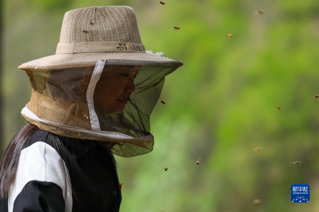 陳曉麗在了解村民胡書獻的養蜂情況(4月18日攝)。新華社記者 張鋮 攝