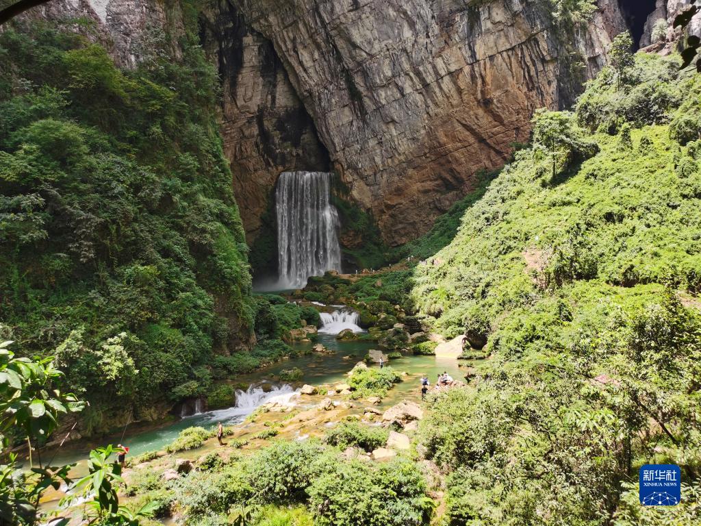 這是2022年8月11日拍攝的“野景點”貴州省清鎮市羊皮洞瀑布。