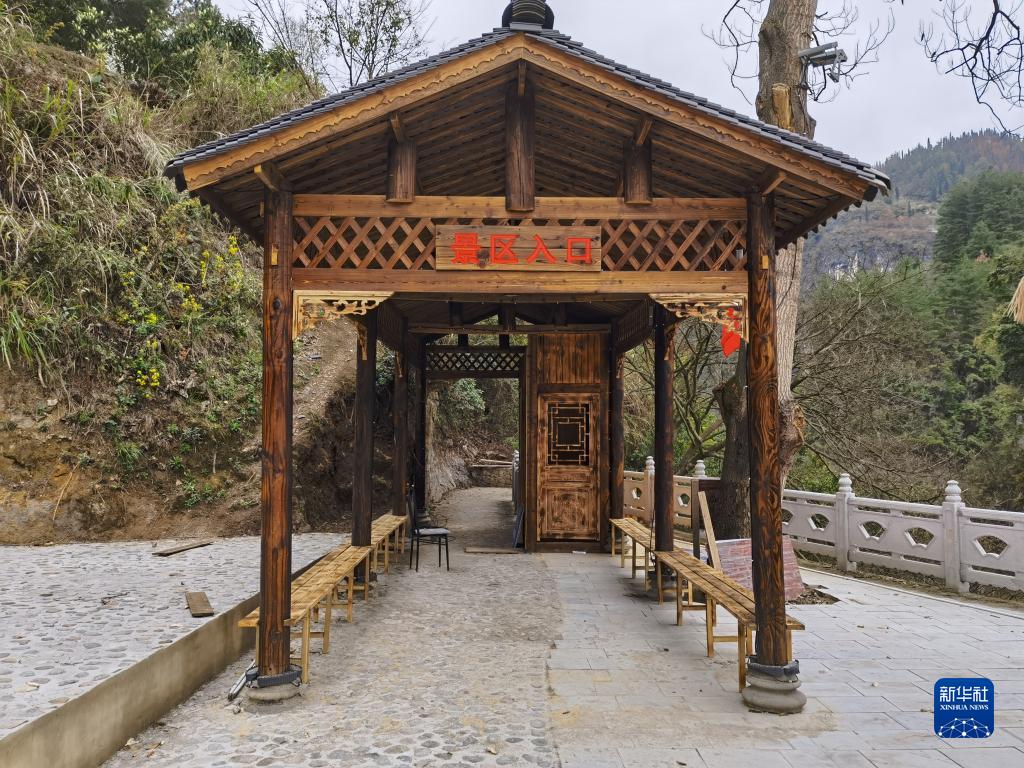 這是2023年3月18日拍攝的正在升級改造的貴州省開陽縣香火巖瀑布景區入口(手機照片)。