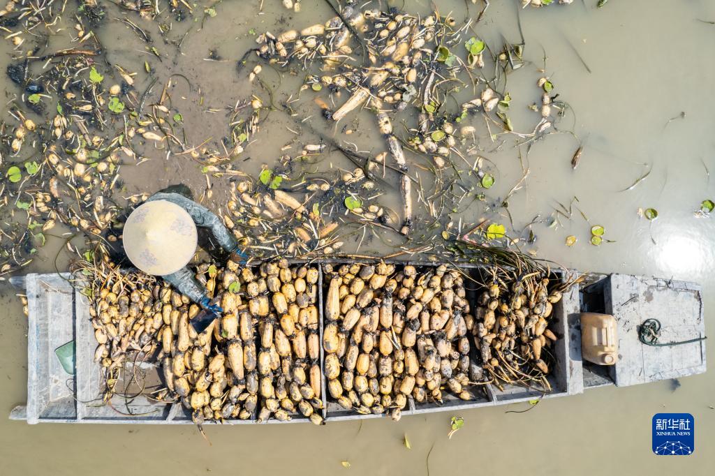 近日,湖南省益陽市南縣中魚口鎮種植的蓮藕迎來豐收,數十名藕農在荷塘中抓緊采挖蓮藕,日產量3噸左右。據了解,中魚口鎮種植蓮藕5000余畝,大力發展藕、蝦、魚套養,是當地傳統種植產業,產品主要銷往廣東、廣西以及湖南長沙等地。