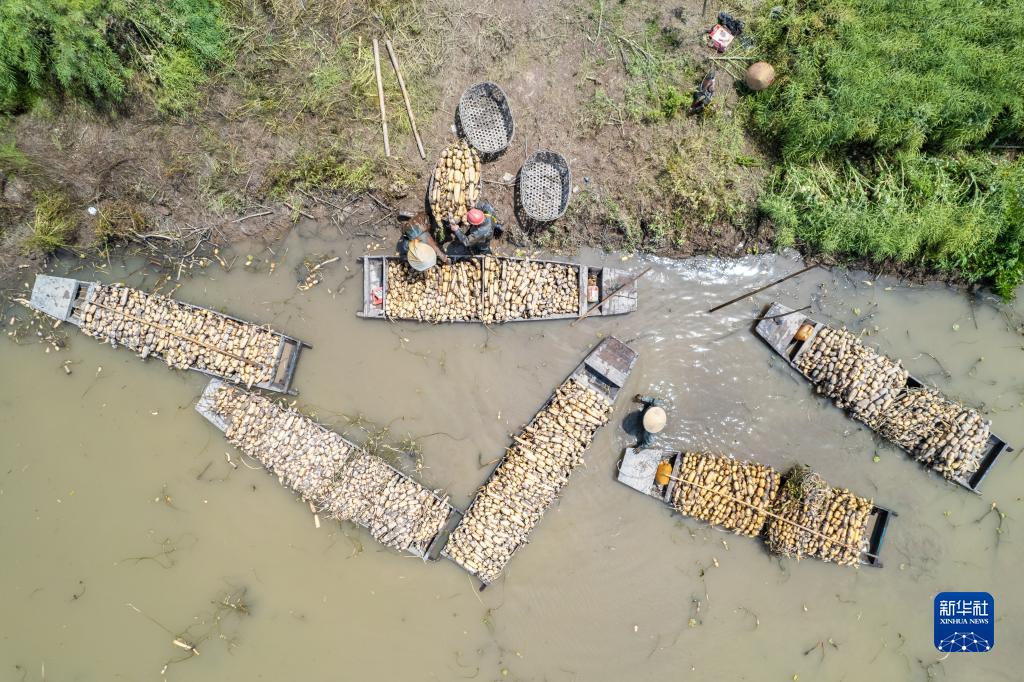 近日,湖南省益陽市南縣中魚口鎮種植的蓮藕迎來豐收,數十名藕農在荷塘中抓緊采挖蓮藕,日產量3噸左右。據了解,中魚口鎮種植蓮藕5000余畝,大力發展藕、蝦、魚套養,是當地傳統種植產業,產品主要銷往廣東、廣西以及湖南長沙等地。