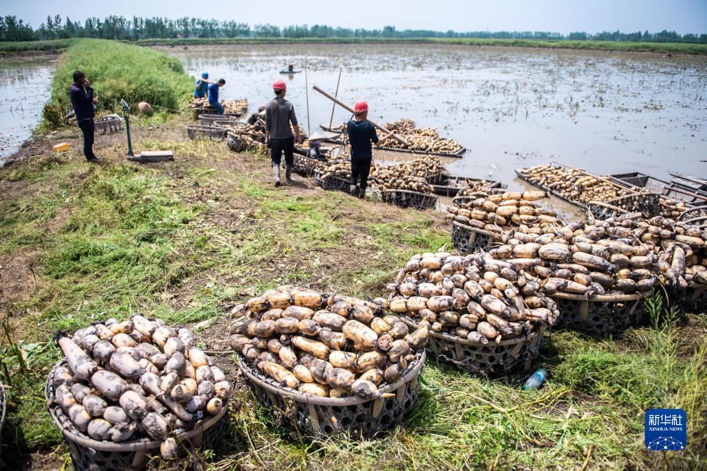 近日,湖南省益陽市南縣中魚口鎮種植的蓮藕迎來豐收,數十名藕農在荷塘中抓緊采挖蓮藕,日產量3噸左右。據了解,中魚口鎮種植蓮藕5000余畝,大力發展藕、蝦、魚套養,是當地傳統種植產業,產品主要銷往廣東、廣西以及湖南長沙等地。