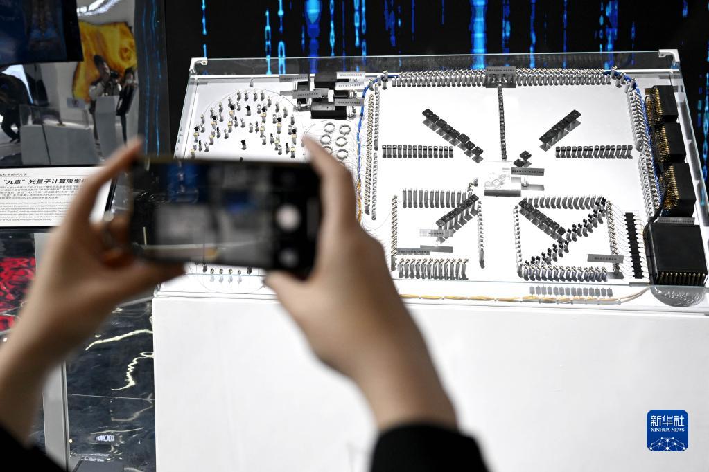4月26日,觀眾在第二屆中國(安徽)科技創新成果轉化交易會上拍攝“九章”光量子計算原型機模型。