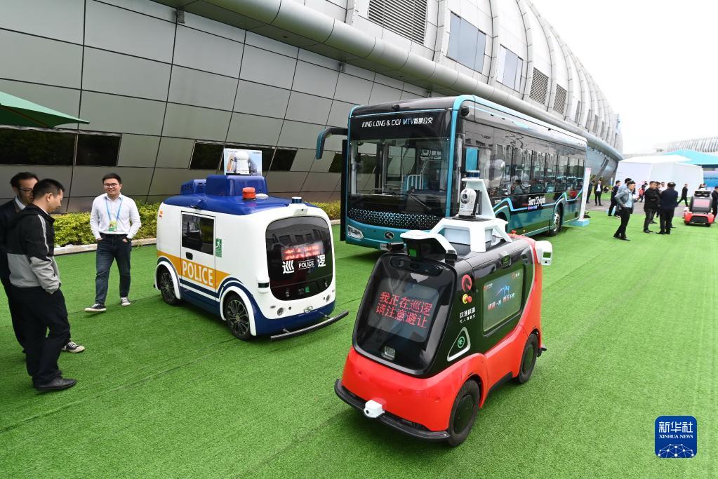 4月26日在第六屆數字中國建設成果展覽會上拍攝的多種智慧車輛。