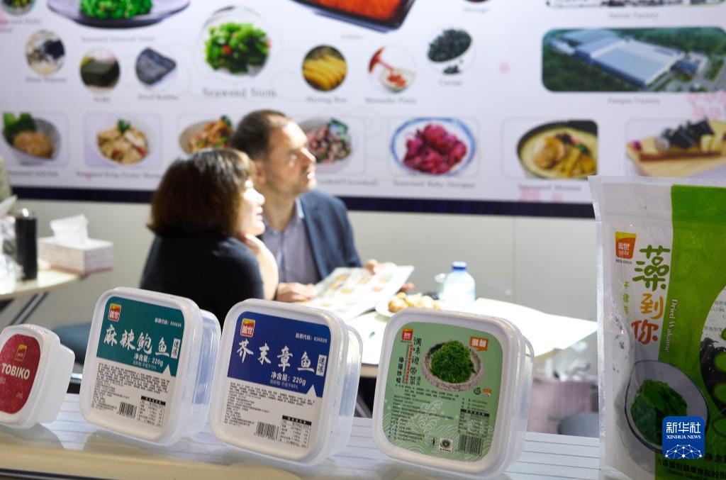 4月25日,在西班牙巴塞羅那舉行的全球水產品博覽會上,參展商和參觀者在中國展區洽談。