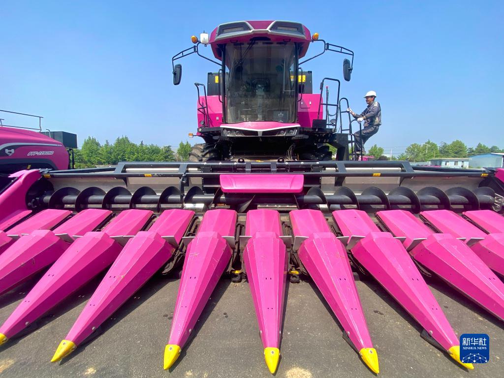 4月26日,在山東省臨沂市臨沭縣一家農機企業,工人在調試機械。