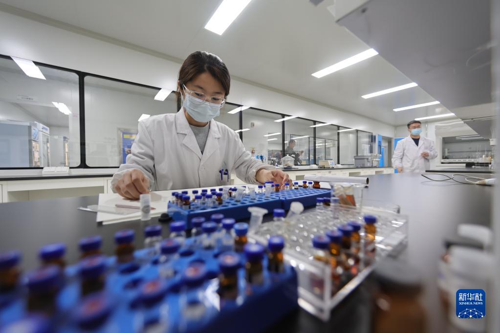 4月26日,員工在山東省臨沂市魯南制藥集團股份有限公司中藥制藥共性技術國家重點實驗室工作。