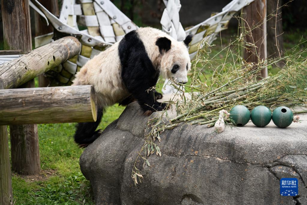 這是4月25日在美國田納西州孟菲斯動物園拍攝的大熊貓“丫丫” 。