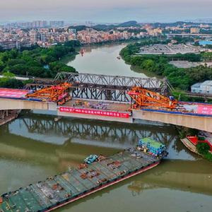 經過中鐵三局施工人員連續6小時整體吊裝和焊接,廣州白云火車站流溪河特大橋重達1100噸的鋼箱梁主梁與鋼混連接段于4月27日凌晨順利合龍。流溪河特大橋為京廣高鐵聯絡線和廣湛高鐵聯絡線四線鐵路并行橋梁。