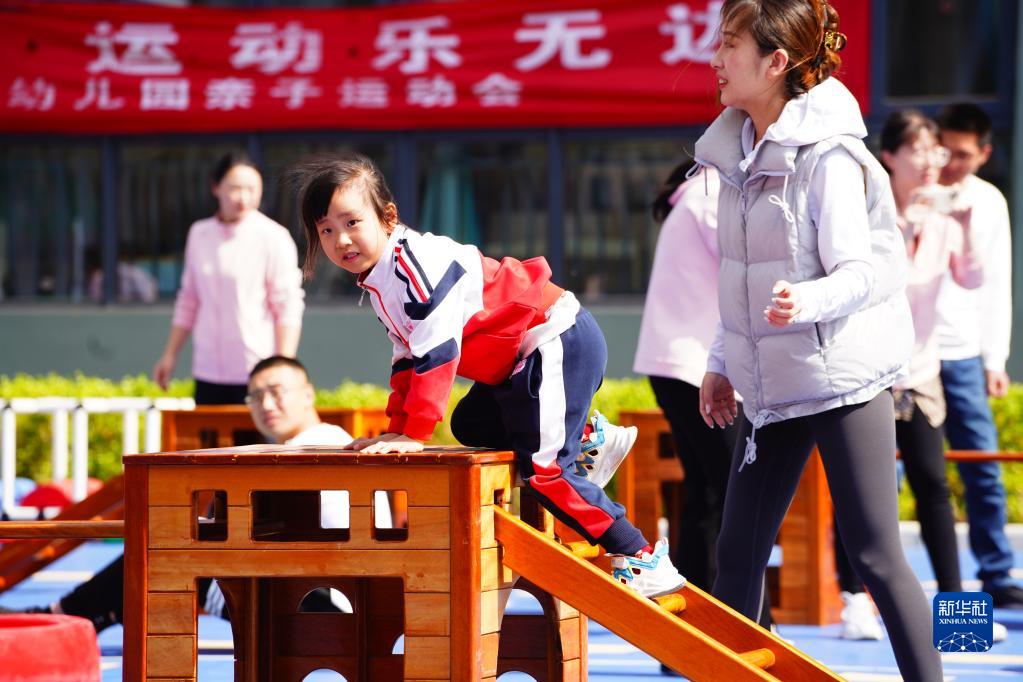 當日,山東省濟南市市中區山望幼兒園舉行“親子共相伴 運動樂無邊”親子運動會,孩子們在親情呵護下體味運動帶來的歡樂。