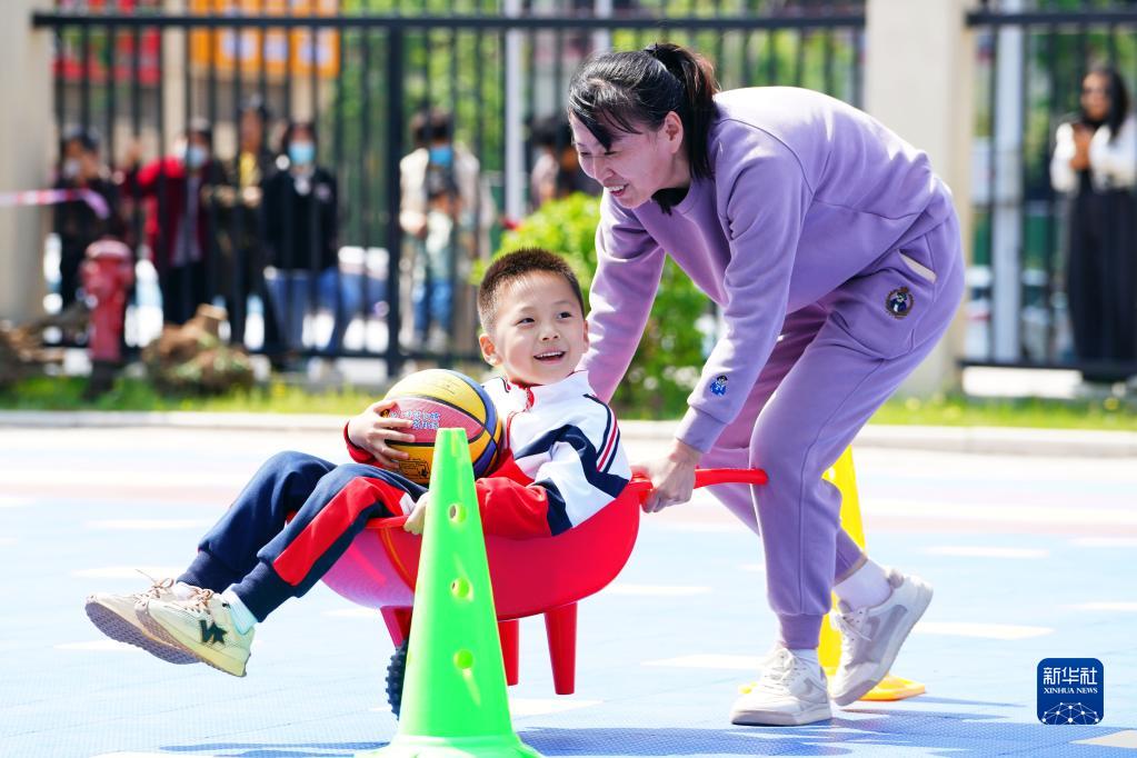 當日,山東省濟南市市中區山望幼兒園舉行“親子共相伴 運動樂無邊”親子運動會,孩子們在親情呵護下體味運動帶來的歡樂。