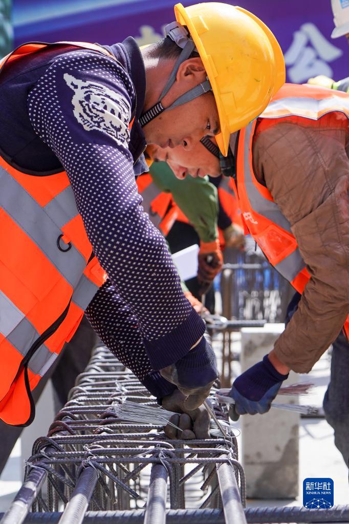 當日,多地舉行技能比武活動,建設者們一展身手,迎接“五一”國際勞動節。