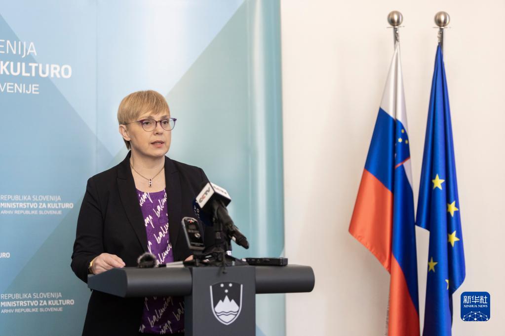 4月26日,在斯洛文尼亞盧布爾雅那的斯洛文尼亞共和國檔案館,斯洛文尼亞總統穆薩爾在劉松齡與璣衡撫辰儀文獻展開幕上致辭。