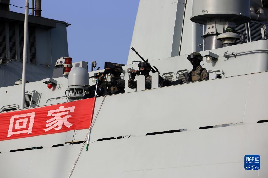 當地時間4月26日,中國海軍導彈驅逐艦南寧艦、綜合補給艦微山湖艦緊急駛赴蘇丹,執行撤離我在蘇丹人員任務。這是海軍陸戰隊隊員在撤離現場擔負警戒任務。