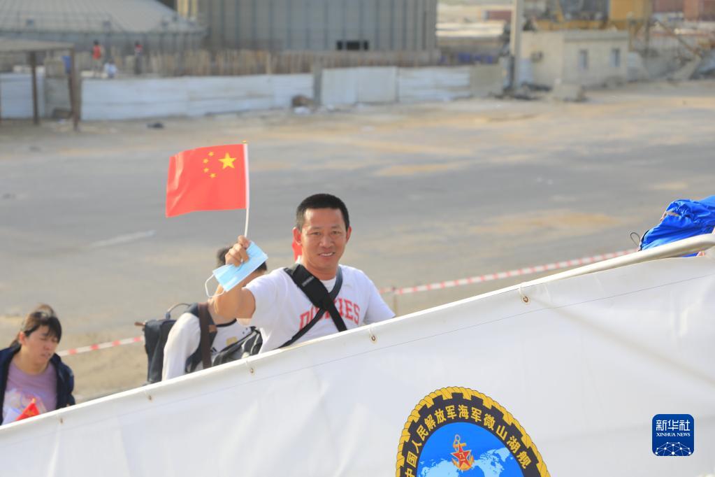 當地時間4月26日,中國海軍導彈驅逐艦南寧艦、綜合補給艦微山湖艦緊急駛赴蘇丹,執行撤離我在蘇丹人員任務。這是撤離人員登上微山湖艦。