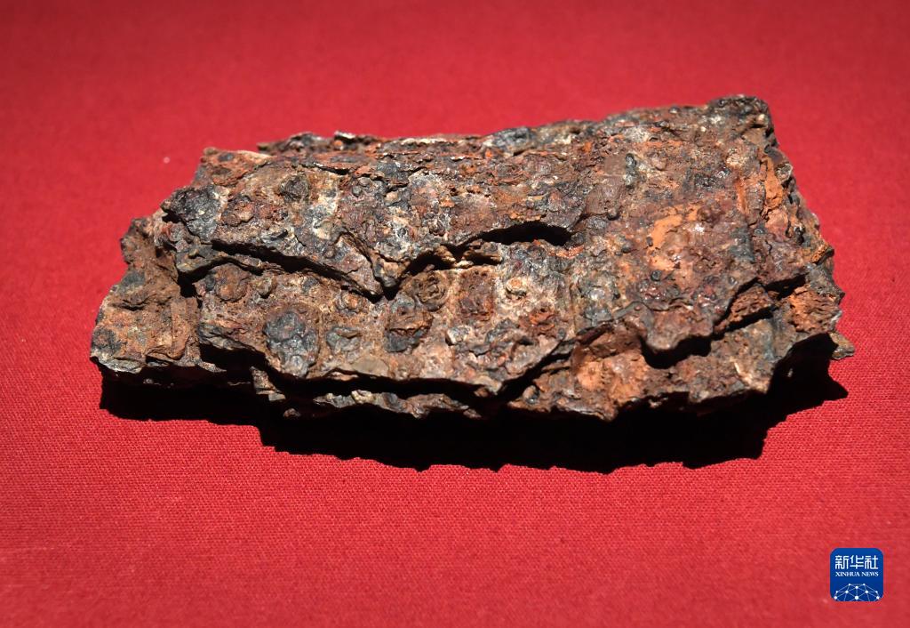 這是曹操高陵遺址博物館內展出的鐵甲片(4月22日攝)。