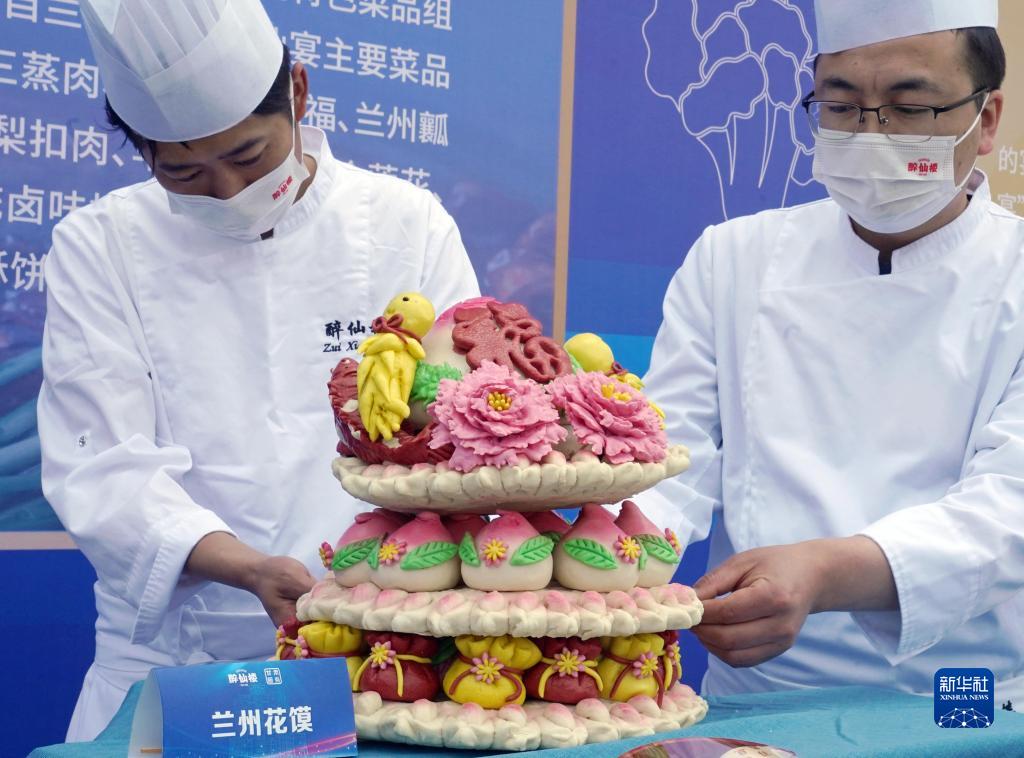4月27日,來自蘭州的面點師展示他們制作的蘭州花饃。