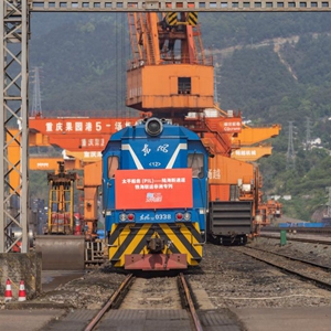 當日,一列載有76標箱聚酯切片、摩托車配件等貨值近1500萬元貨物的太平船務——西部陸海新通道江鐵海聯運非洲專列,從重慶果園港魚嘴站駛出,經廣西欽州港出海運往非洲尼日利亞和莫桑比克。