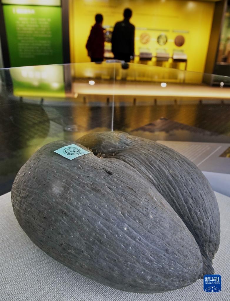 這是4月27日在國家植物園拍攝的海椰子種子。