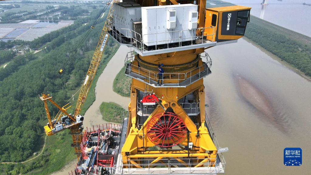 4月26日,劉理在塔吊上進行日常維護(無人機照片)。