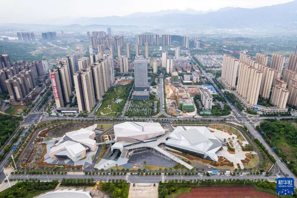 這是4月28日拍攝的建設中的郴州市文體中心(無人機照片)。
