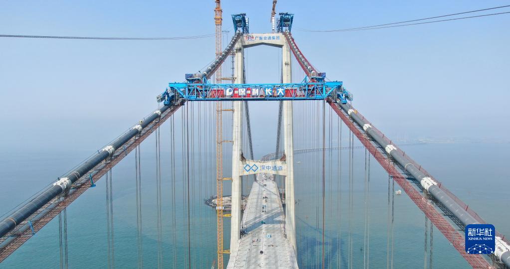 這是4月28日拍攝的深中通道伶仃洋大橋西塔(無人機照片)。