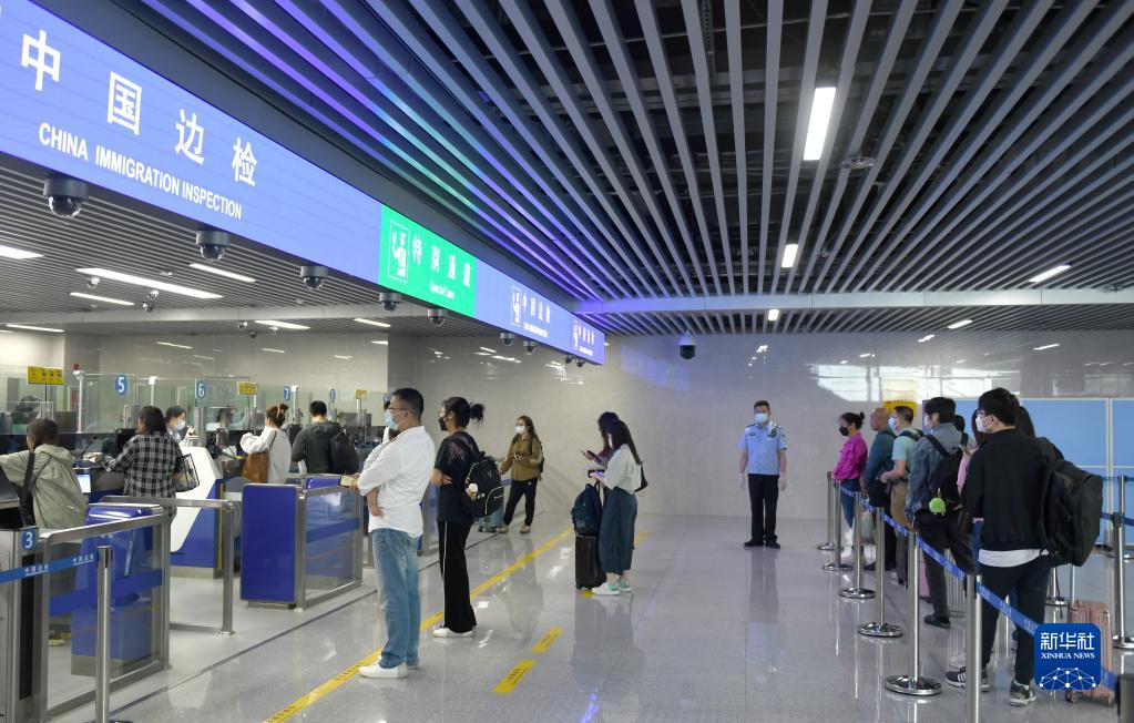 4月28日,旅客在廣州琶洲港澳客運口岸辦理邊檢手續,準備前往香港國際機場。