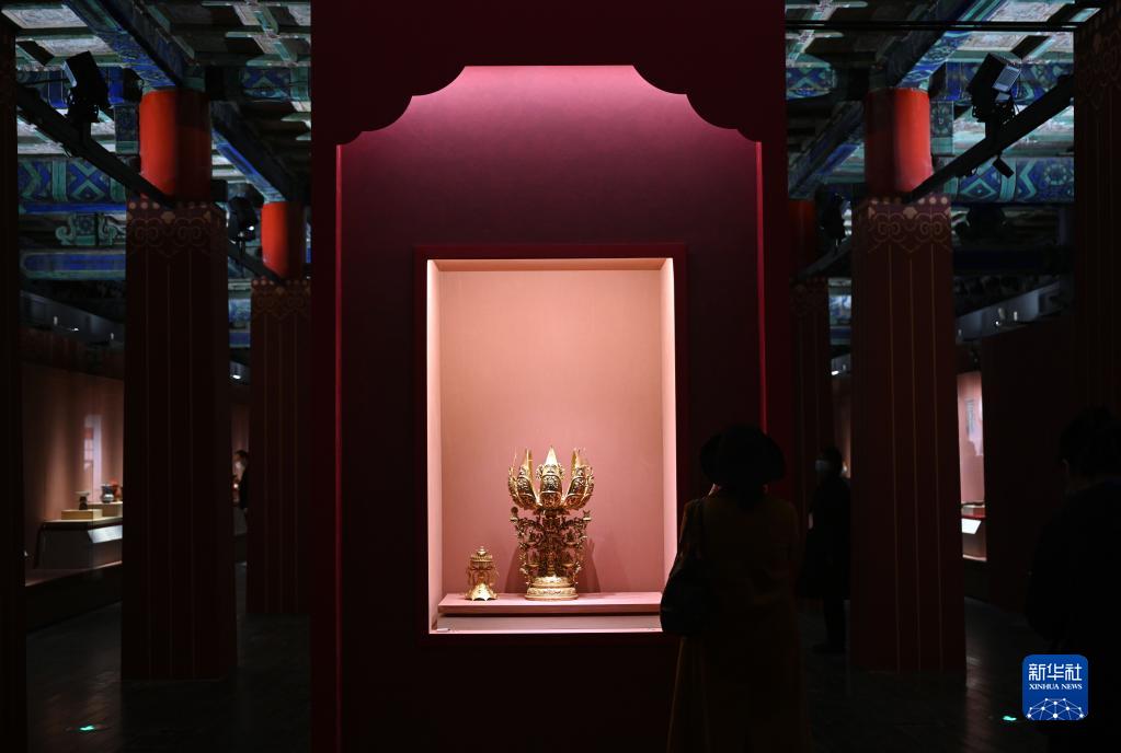 這是4月28日在北京故宮博物院拍攝的“祥開萬象——故宮與西藏文物聯展”展覽現場。
