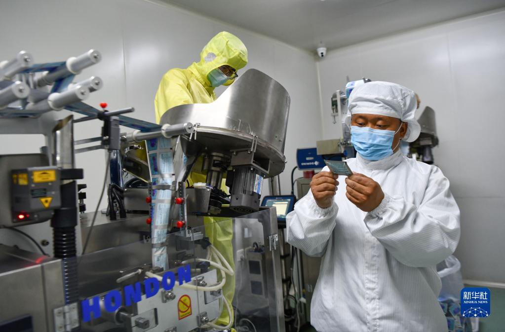 普窮次仁在檢查藏藥內包生產工序(4月20日攝)。